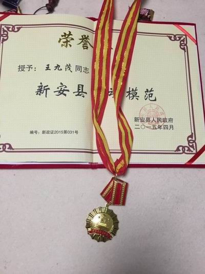 2015年04月29日晚,縣委,縣政府、縣工會在新安縣舉行了五一勞動模范表彰大會,我公司總經理王九茂榮獲縣勞動模范稱號。王總是我公司全體員工學習的楷模。