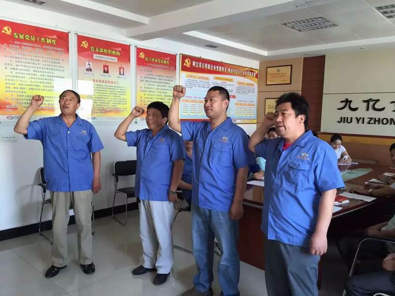 2015年7月1日:今天是中國(guó)***黨94歲的生日:洛陽九億重工集團(tuán)有限公司黨支部為3名新黨員舉行入黨儀式:宣誓入黨誓詞;黨的事業(yè)后繼有人!